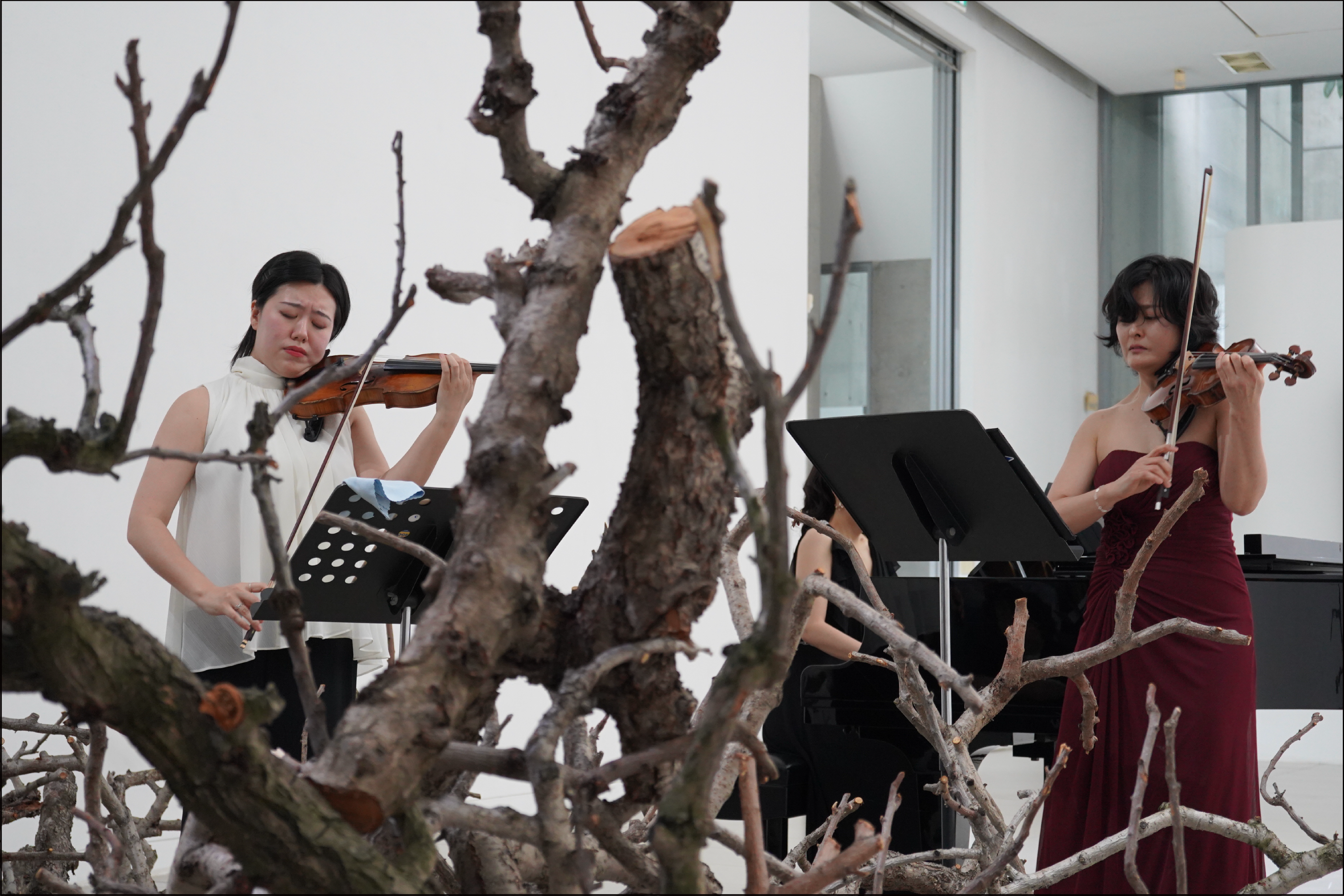 활기찬 유월의 오전시간, 피아니스트, 두명의 바이올리스트가 들려주는 비오티, 핸델, 비발디, 쇼스타코비치, 드뷔시, 사라사테의 명곡들, ’형을 위한 노래‘(남혜승, 박상희 작곡) 등 여름의 열기 앞에 시원한 바람처럼 느껴지는 전시장 음악회입니다.